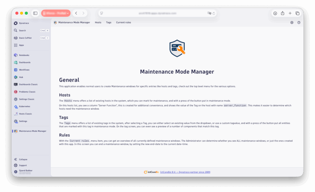 Instead, this app focuses on doing a few things very well – and making them safely accessible to day-to-day users. The result is a fast, intuitive tool that enables operational teams to perform their maintenance tasks with confidence, without needing deep Dynatrace expertise or risking misconfiguration.
